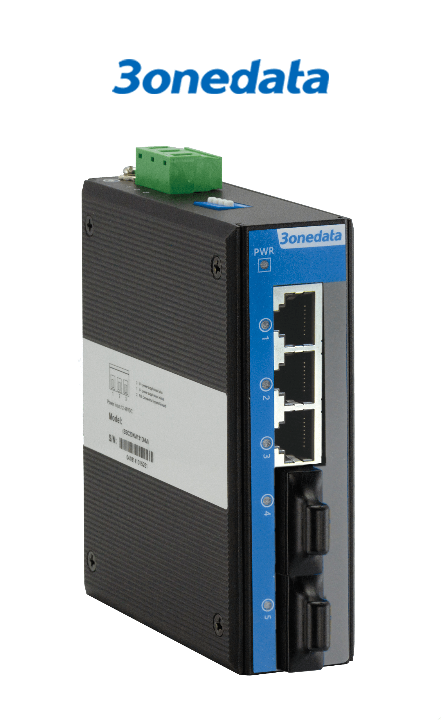 2*100Base-FX (Single-mode, SC 20KM) + 3*10/100Baes-T(X) (RJ45), single power supply:12~48VDC